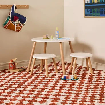 Children's furniture set with a hard, scratch-free surface that is resistant and easy to clean. The chair legs are angled for a stable construction that can withstand the activities that children can subject them to.