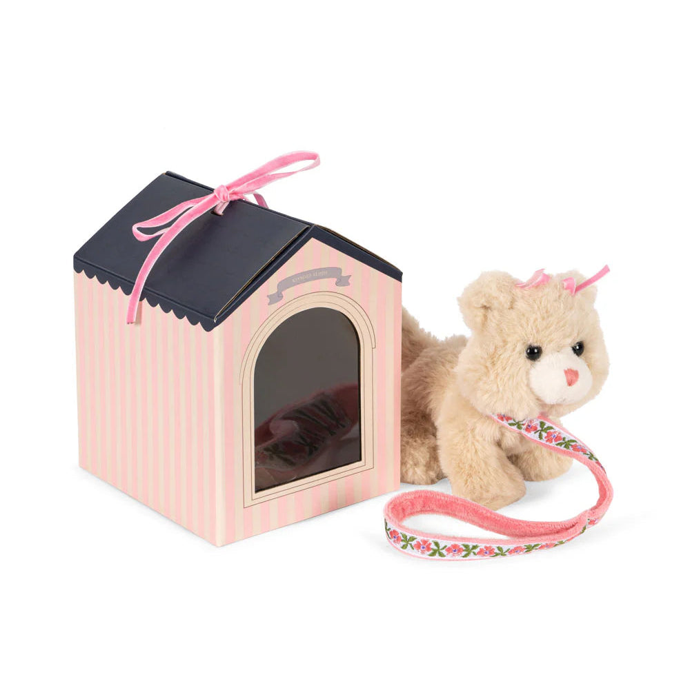 Soft pet kitty with its own little home that is easy to carry. The tiny kitty includes its own leash too, so you can bring it with you everywhere you go.