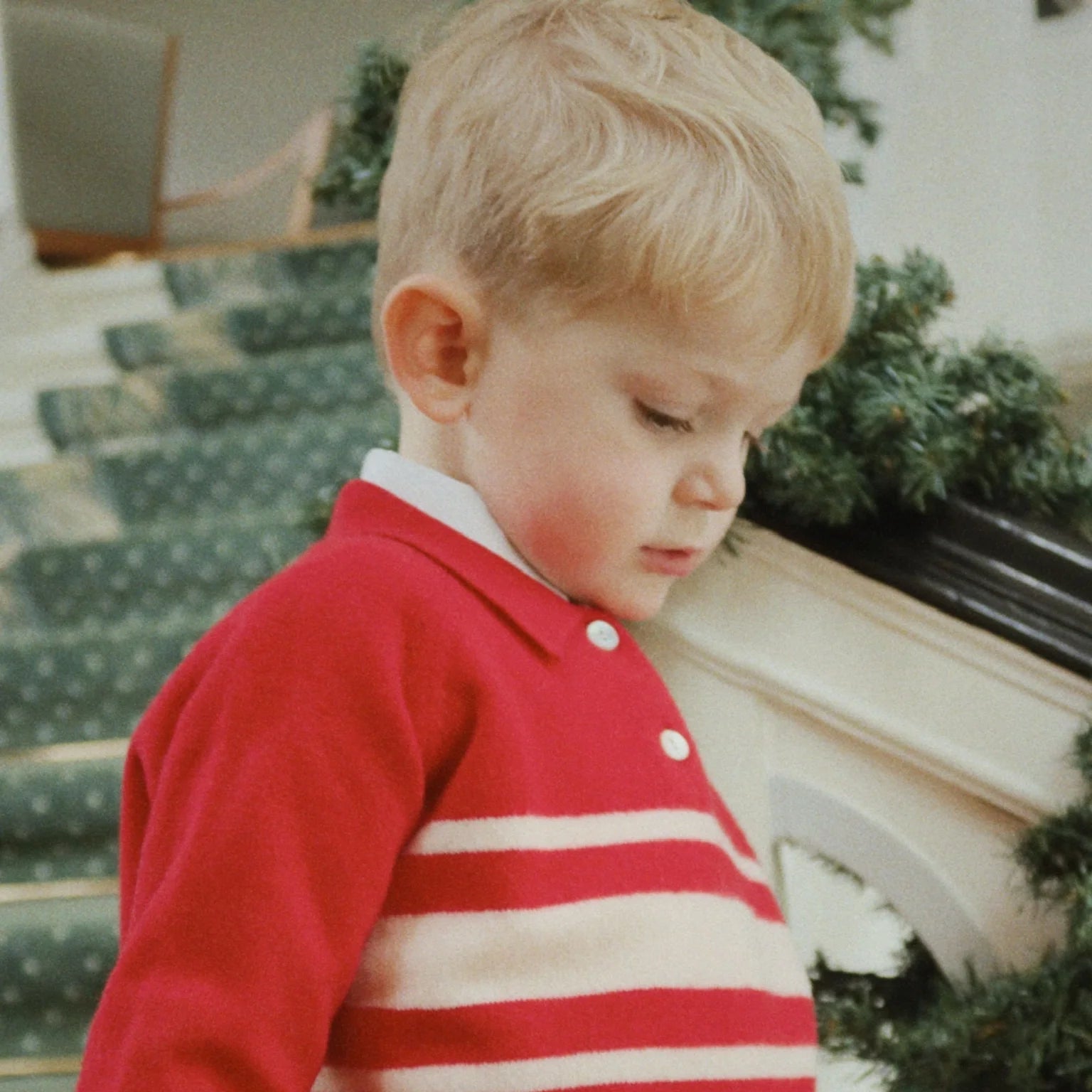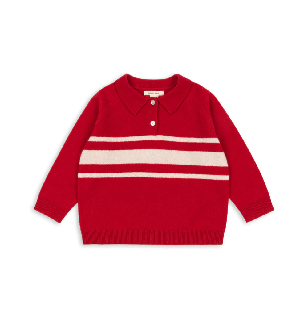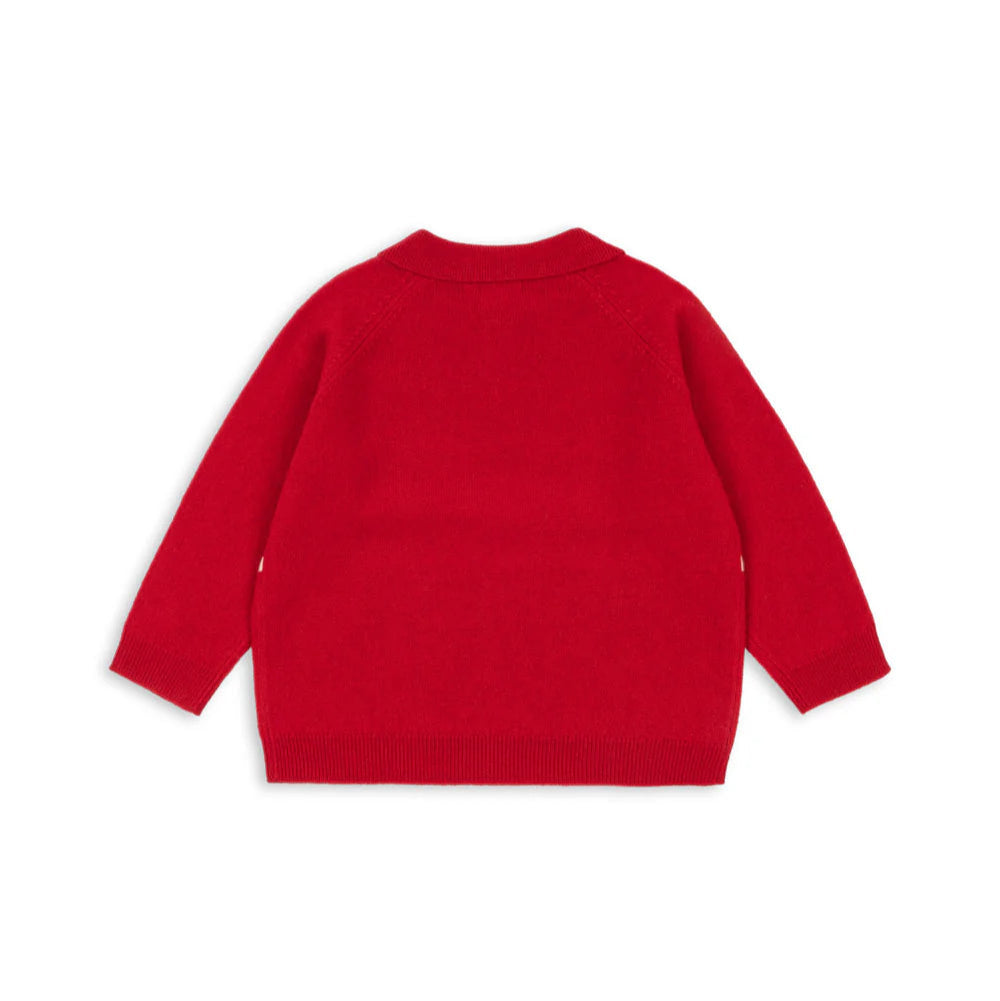 Soft and warm wool sweater in a classic polo design. Features rib cuffs, a regular collar, and front button placket.