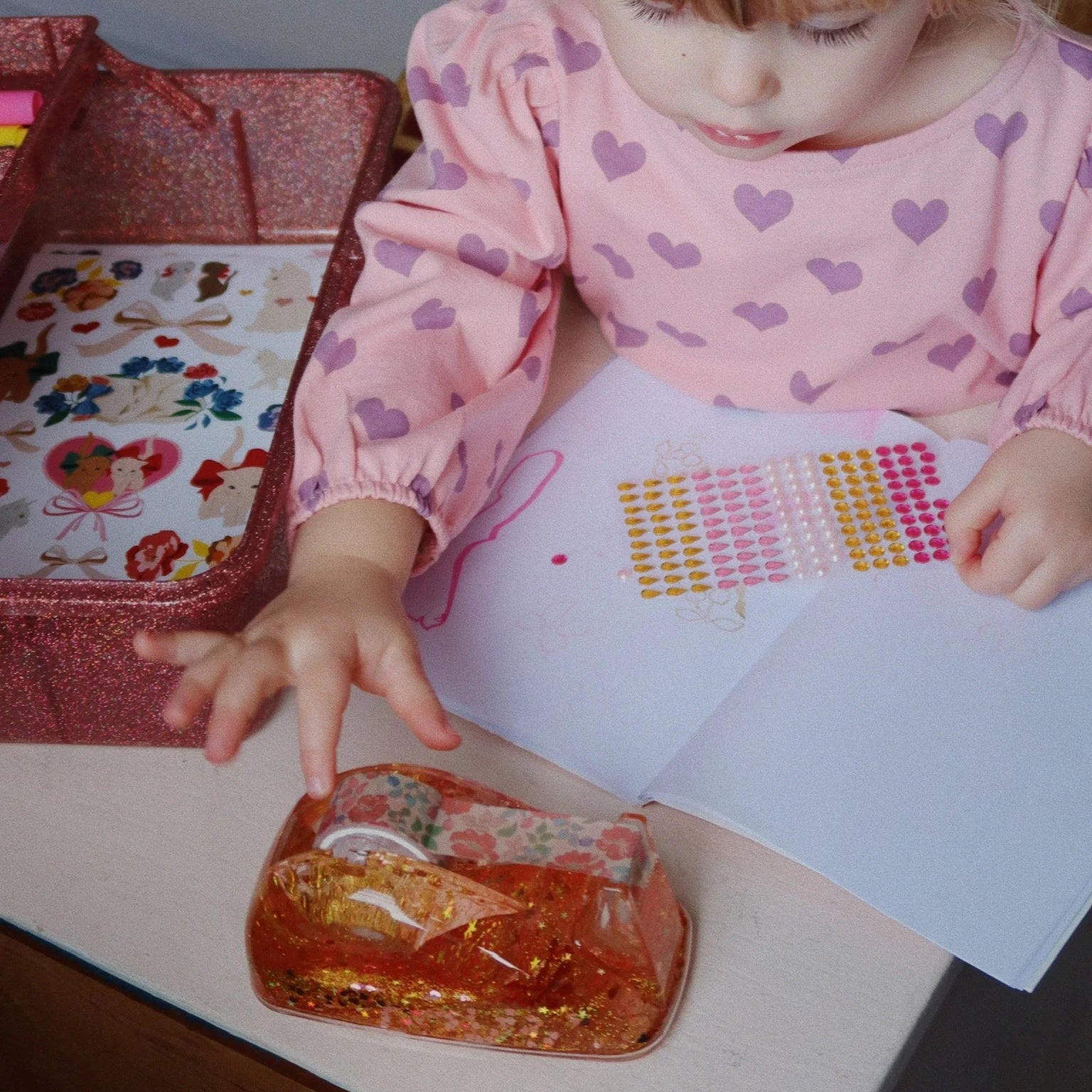 This colorful and sparkly tape dispenser deserves a front row seat at your arts and crafts table, keeping all you colorful washi tape right at hand.
