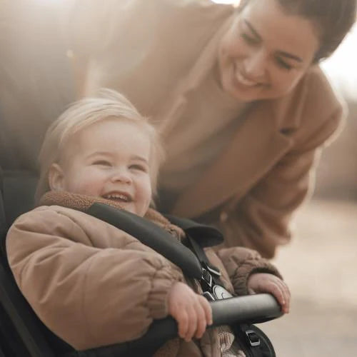 Easy for on the go. Our stroller is perfect for a walk with your child. To the park, the shopping mall, or the zoo; our luxury stroller makes it comfortable and easy for both of you. The stroller is easy to fold, compact, and lightweight. It takes little effort to fold the stroller. The stroller rides smoothly and can be pushed with just one hand to allow multitasking while walking with your child. There is a brake on the right rear wheel for when you want to stop. The spacious storage basket underneath fits more than just a diaper bag. The backrest can be easily adjusted with one hand to 4 different positions. From sitting to sleeping position, if your child needs a nap while walking. The viewing window is made of breathable mesh, allowing you to take a peek at your child. And don't worry about a little dirt, the material of the stroller can be easily cleaned. The stroller can be used for your child from 6 months, up to a maximum of 22 kg. The safety belt can be adjusted to the age and weight, so your child is always safe and securely fastened.