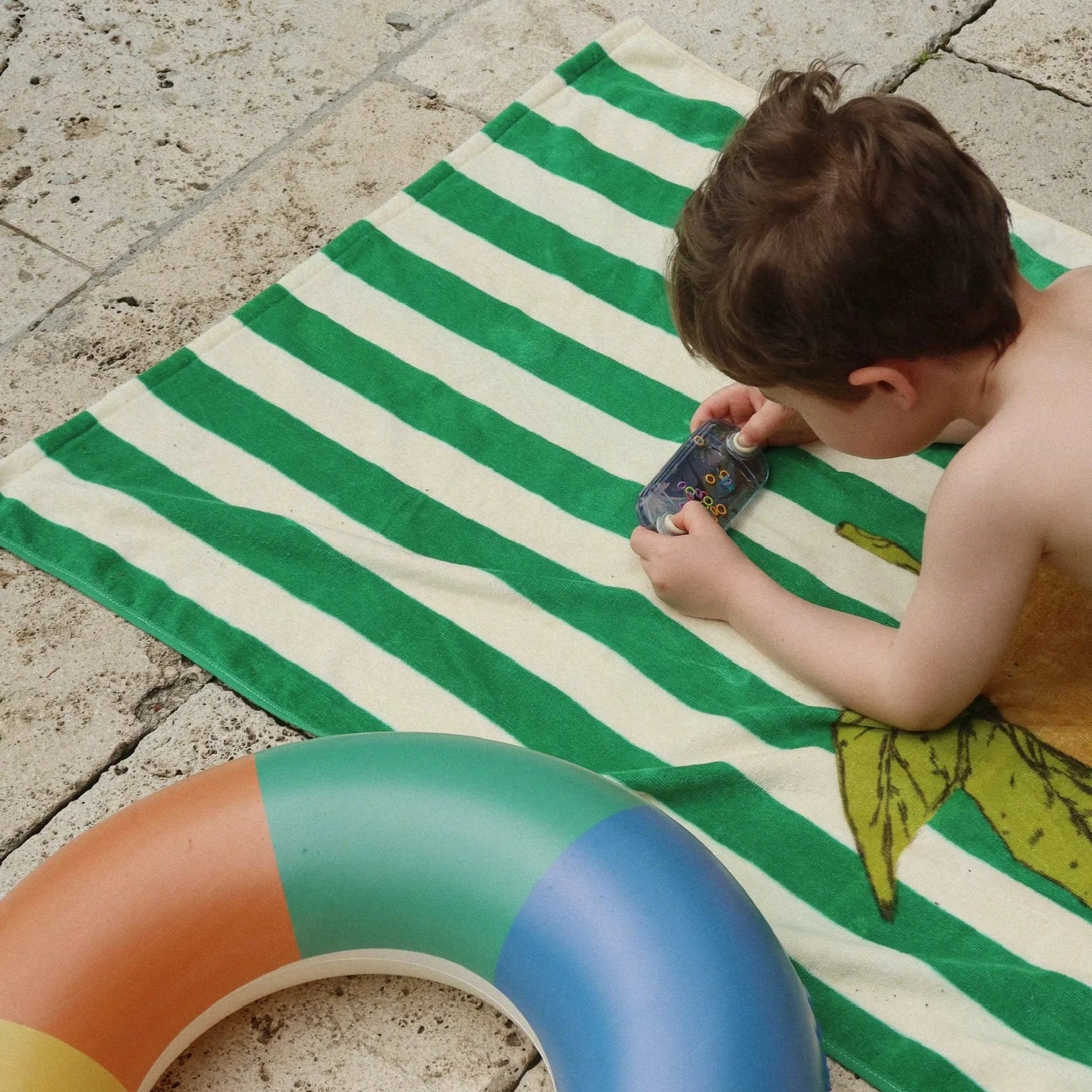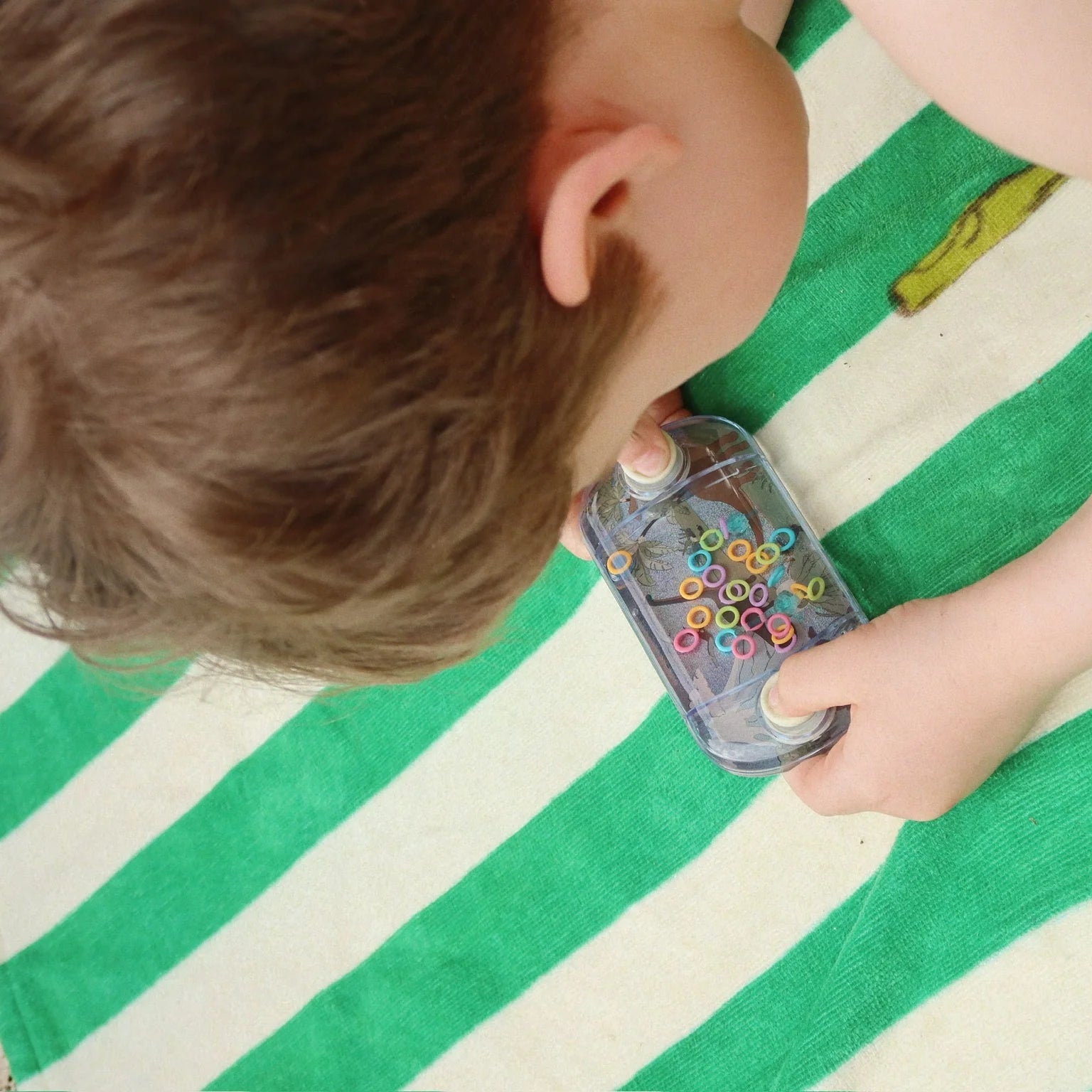 Designed with signature Konges Sløjd backgrounds, this fun water ring game challenges kids to press the buttons and skillfully guide colorful rings onto the floating pegs.