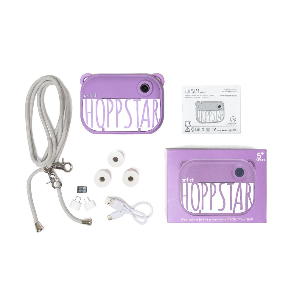 | Important Notes | Please only clean the digital camera with a slightly damp cloth. Please never leave the digital camera in direct sunlight or near a heat source. Keep the digital camera away from moisture and do not let water get on it. The digital camera cannot be used in water or under water! If possible, avoid dropping the digital camera on hard surfaces. The Hoppstar cameras are only to be used under adult supervision. Please do not transfer any photo or video files made with other cameras to the Hoppstar kids camera. Check the educational toy regularly for possible damage. Never open the product yourself. Repairs may only be carried out by qualified personnel. |