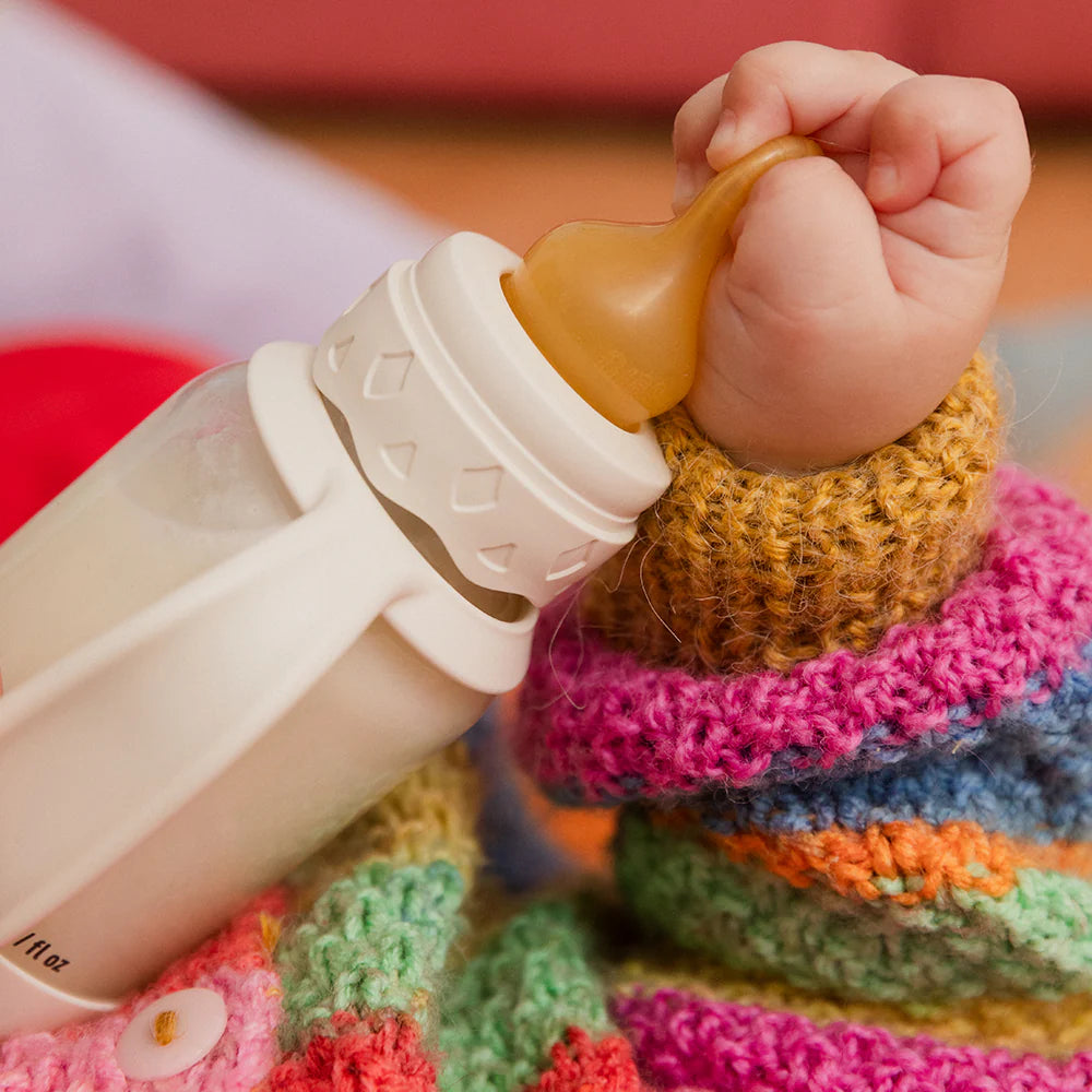 A hypoallergenic, ultra-soft nipple material with a specially designed texture that aids proper oral placement and helps reduce accidental unlatching.