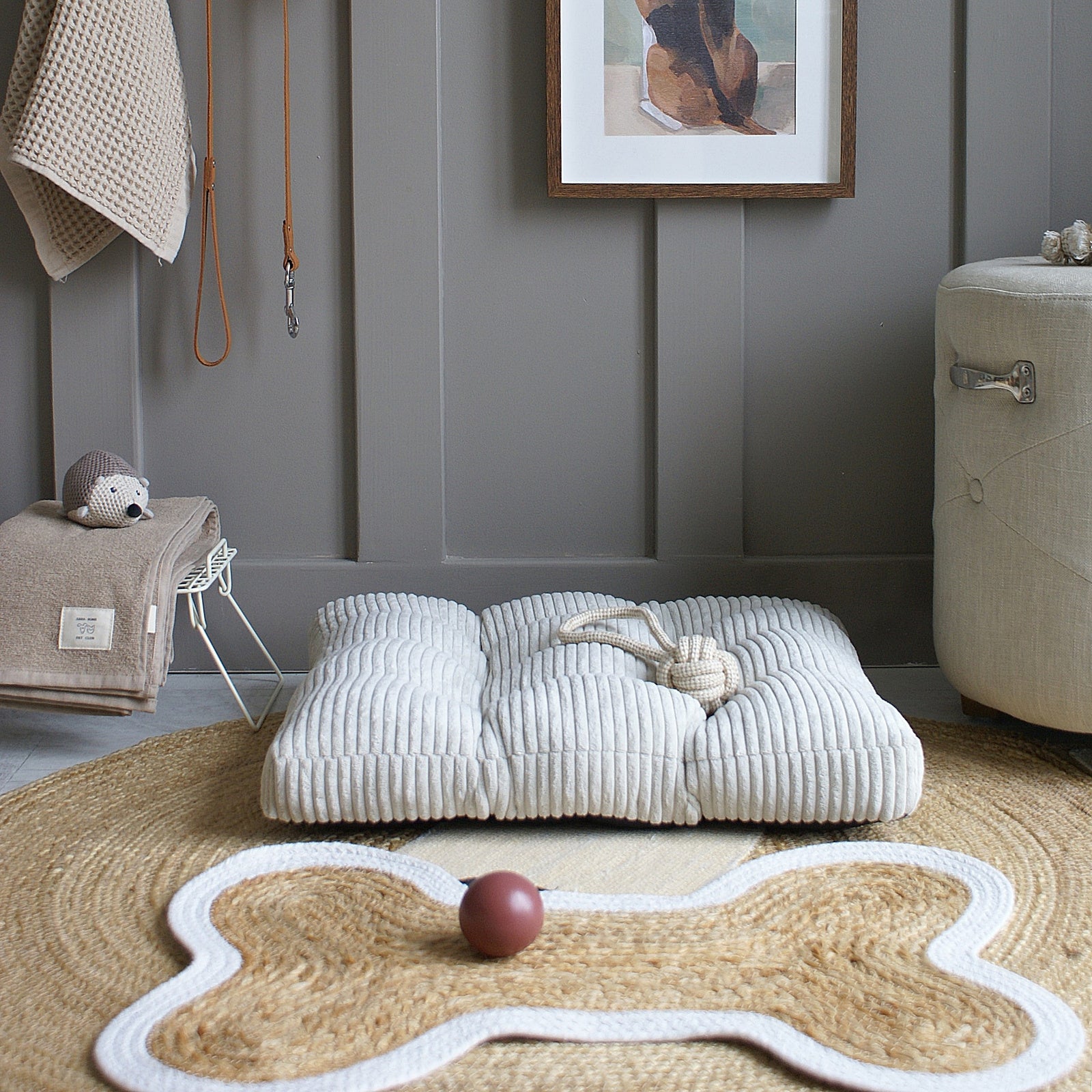 This elegant pillow, made of high-quality corduroy, ensures comfort for your pet with its hypoallergenic filling of foam and silicone balls. Designed and handcrafted in Poland, it stands out for its exceptional durability and aesthetics.