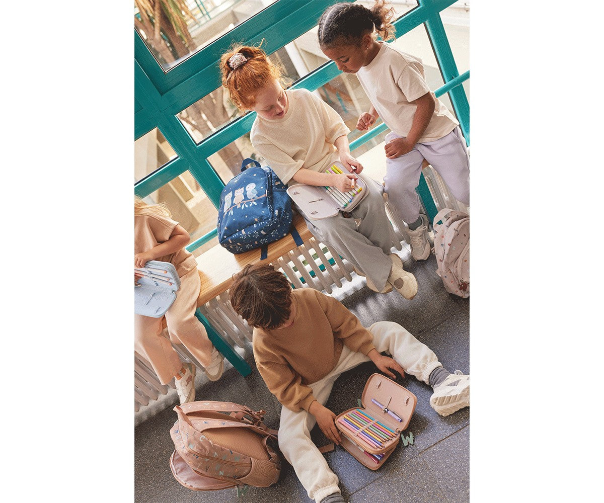 Featuring two separate compartments with zip closures, it’s ideal for keeping pencils, markers, erasers, and other school supplies neatly organized. The waterproof exterior protects contents from spills and moisture, while the fun silicone zipper pulls are easy for children to use.