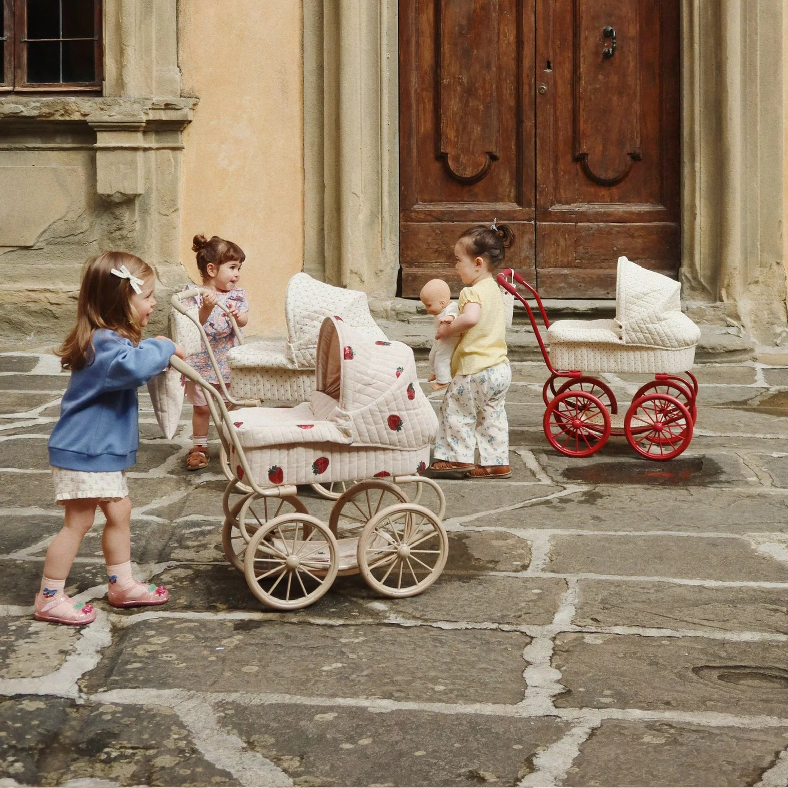 Our vintage style doll pram in a smaller version that is easy for little doll parents to maneuver.