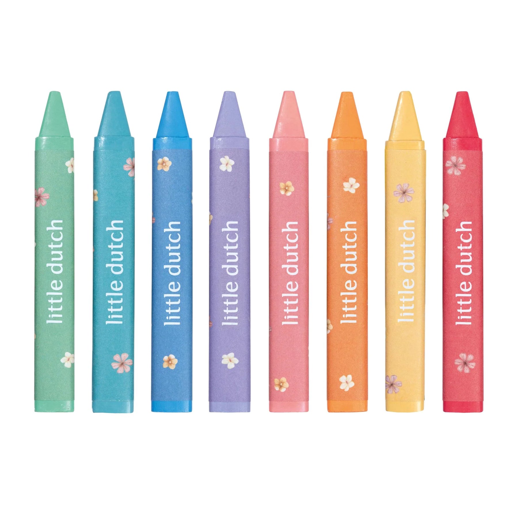 Let your child create the most beautiful artworks with this set of 8 cheerful crayons in soft Little Dutch colors. The triangular shape fits nicely in small hands and stimulates creativity and fine motor skills. Perfect for drawing together and discovering the world of color.