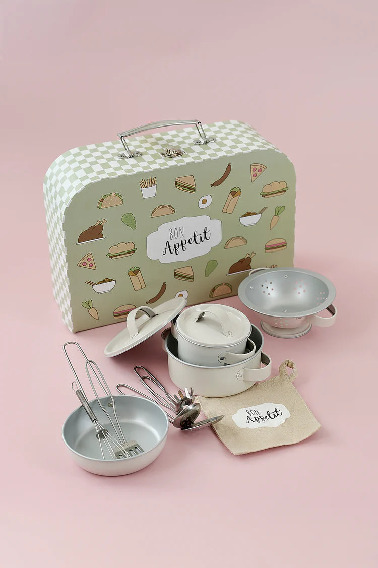 Let your little chef’s imagination run wild with this fun and practical kitchen play set, neatly packed in a stylish suitcase. Designed to inspire creativity and role play, this complete set includes everything needed to cook up endless pretend meals and enjoy hours of entertainment.