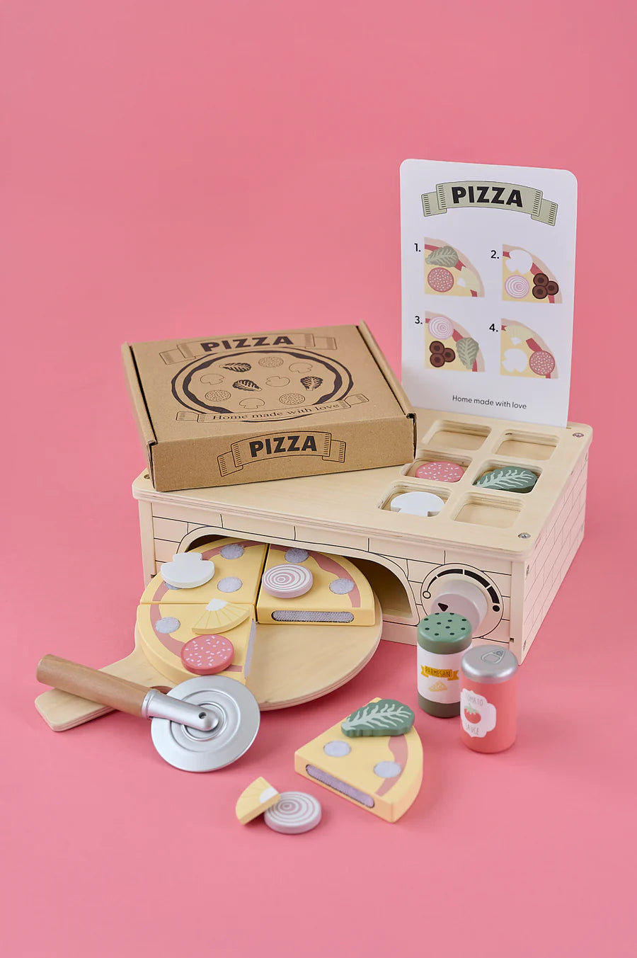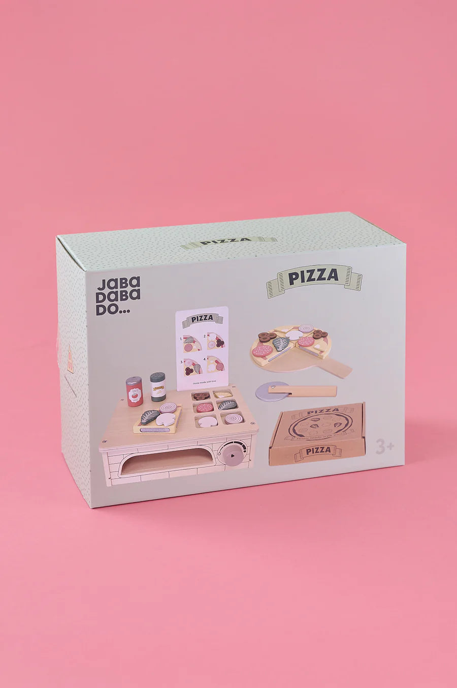 Pizza party! Jabadabado's wooden pizza oven is the perfect toy for any little pizza maker. It includes a large selection of different ingredients so your child can make their very own favourite pizza. The toppings are easily attached to the pizza with Velcro. Serve this imaginative pizza just the way you want it with all the tasty accessories or follow the receipt from the included menu card. With a realistic design, your child will have hours of creative play and be encouraged to try out different flavour combinations and prepare food. The pizza oven contains: