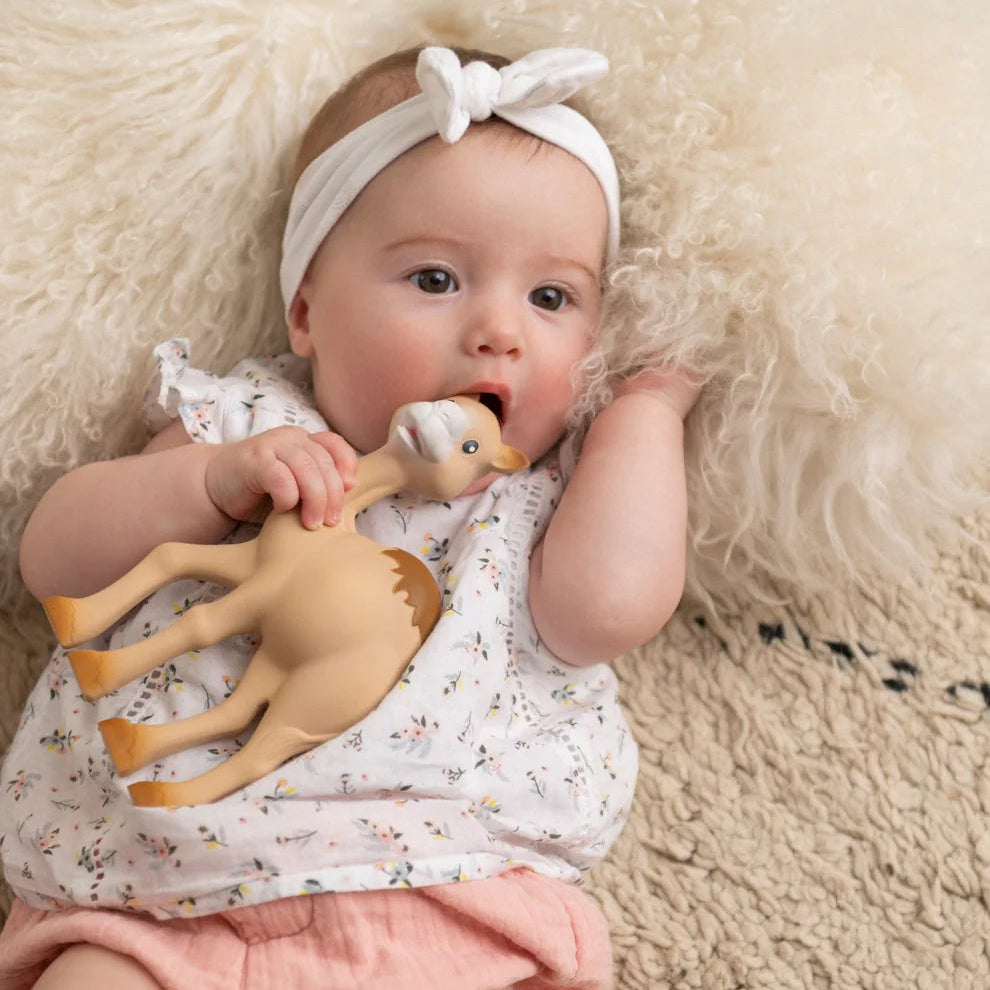 He soothes baby with his softness and can be chewed in total safety to relieve painful gums.
