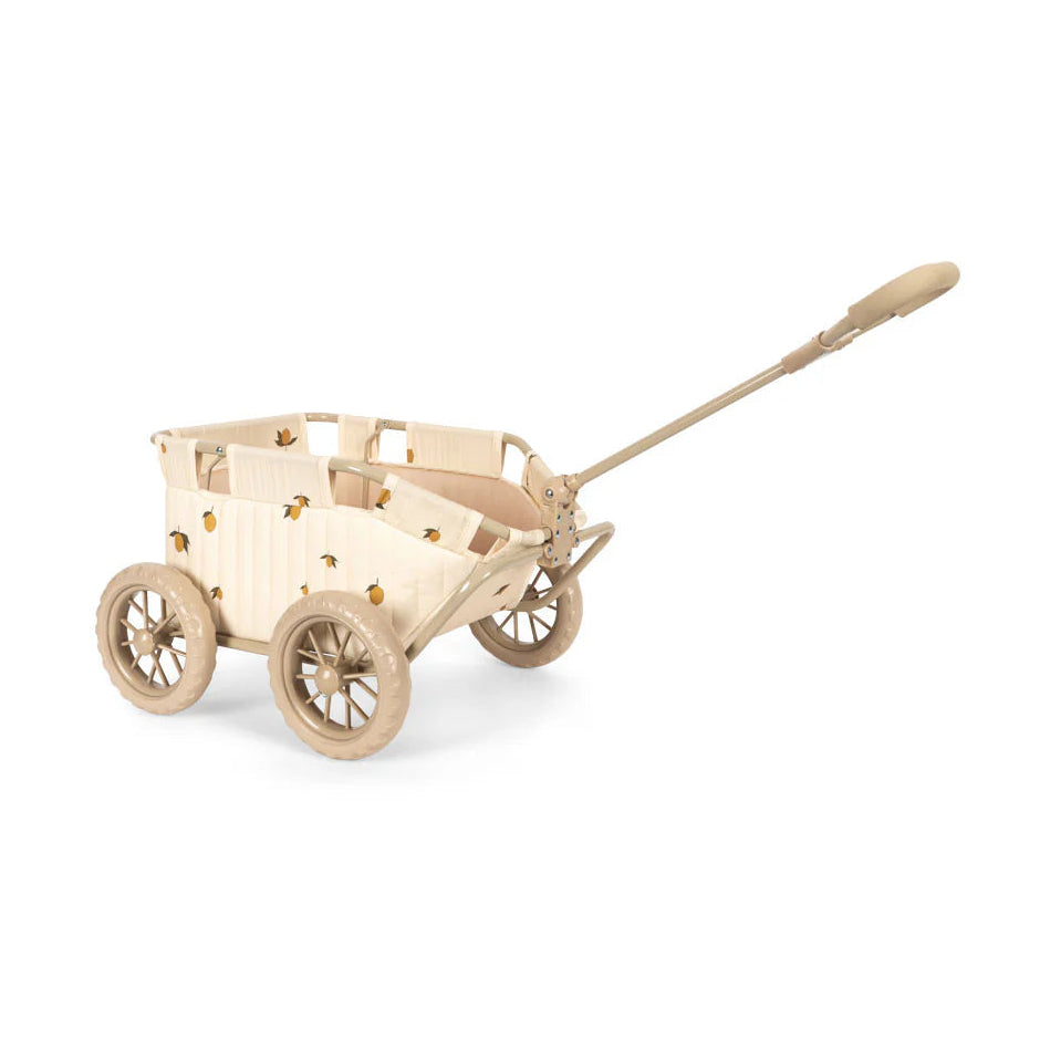 Here's the perfect companion to take all your besties with you for a ride. Our Kids' stroller wagon is designed with a sturdy metal frame and lined with soft cotton. Features smooth, easy-glide wheels and a handle that is sized just right for little hands. Pack all your best dolls and teddy bears and take them with your wherever you go!