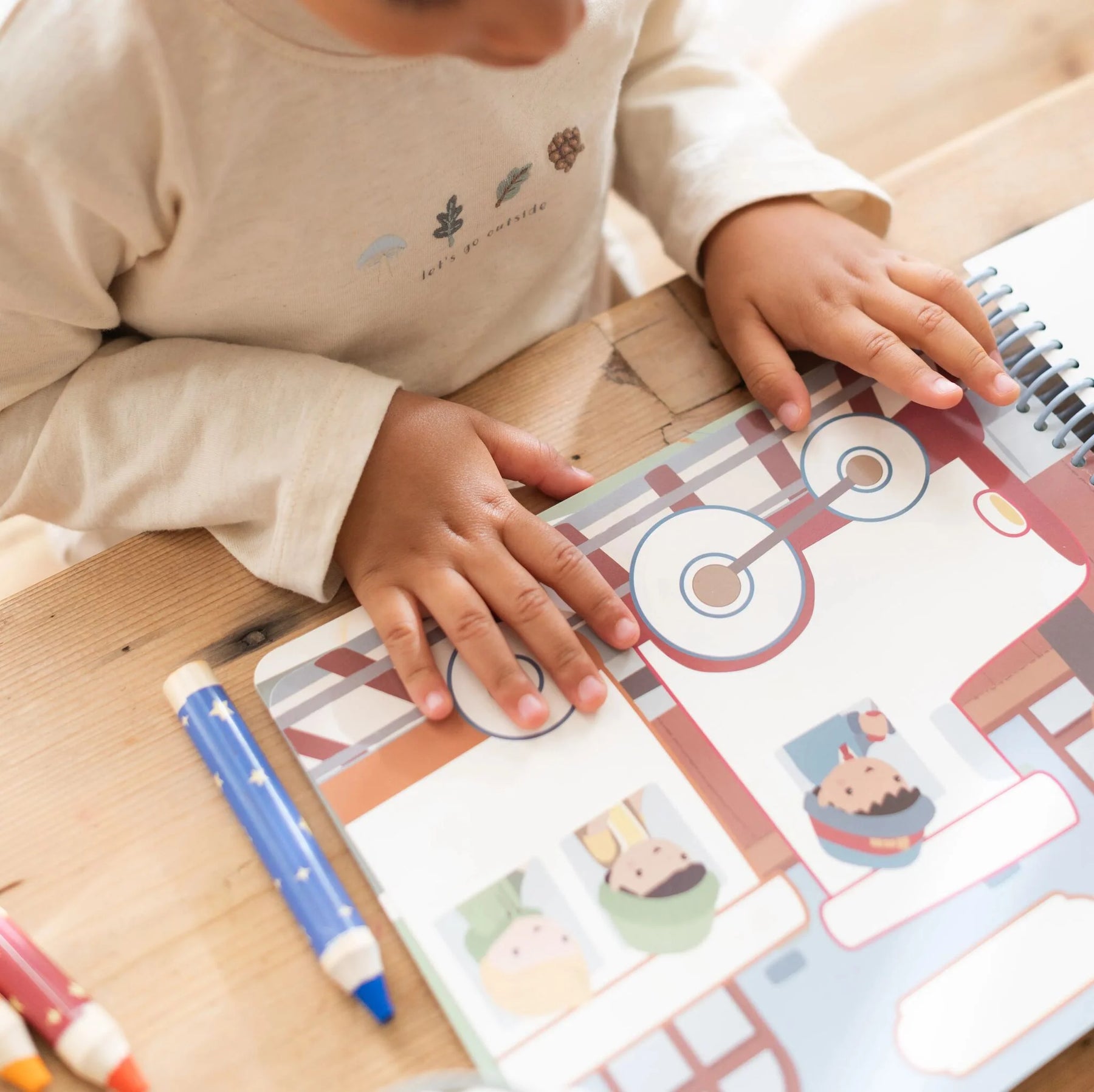 Let your child marvel with this magical coloring book. With soft illustrations and cheerful colors, it invites creative fun. Includes three crayons, twenty pre-printed and ten white pages for endless coloring pleasure. Made of sturdy paper, perfect for little hands.