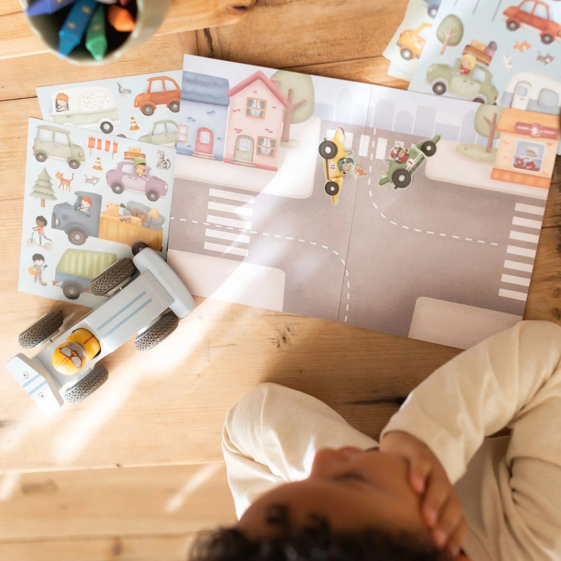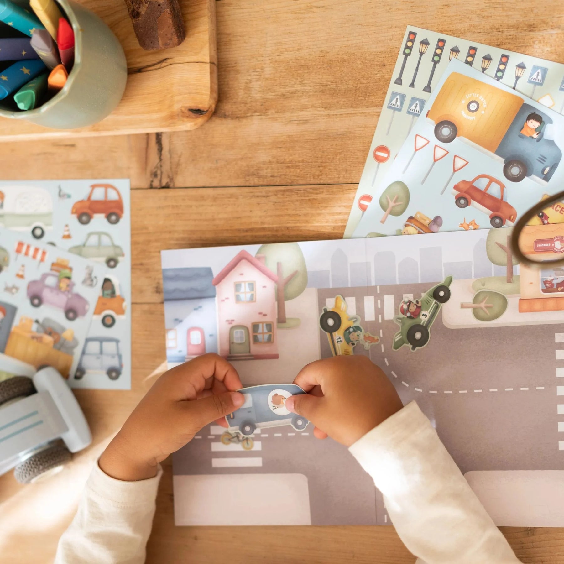 Let your child's imagination come to life with this cheerful sticker set. With more than 100 colorful stickers and a double-sided play background, your little one can endlessly cut, paste, and create stories. Ideal for creative moments together, and perfect to combine with other craft supplies. Made from sturdy paper for hours of playtime fun.